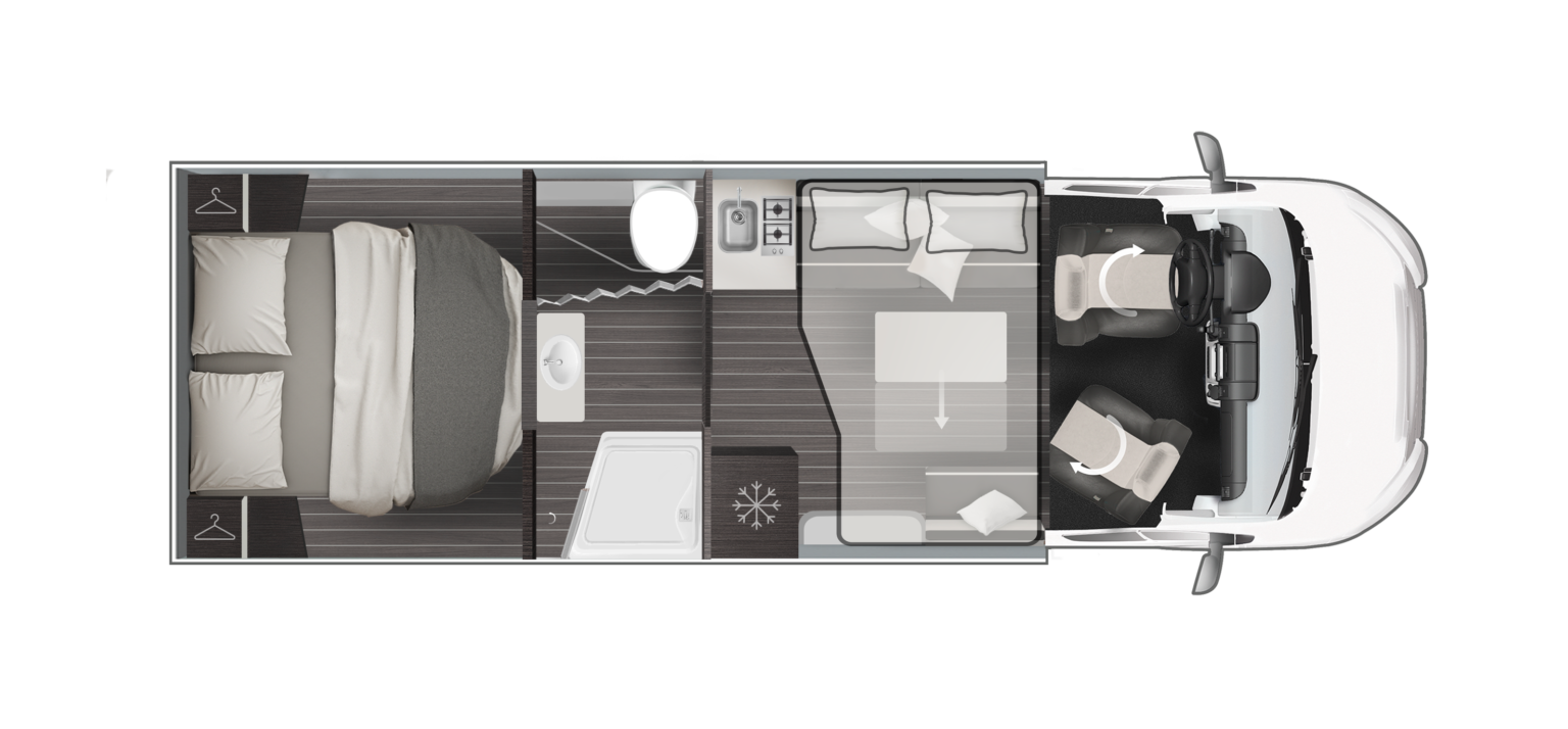 Model Zefiro 266TL oferuje dużą tylną łazienkę, przestronny salon, opuszczane łóżko elektryczne oraz pojemny garaż, dzięki czemu świetnie sprawdzi się zarówno w podróżach we dwoje, jak i rodzinnych wyjazdach.