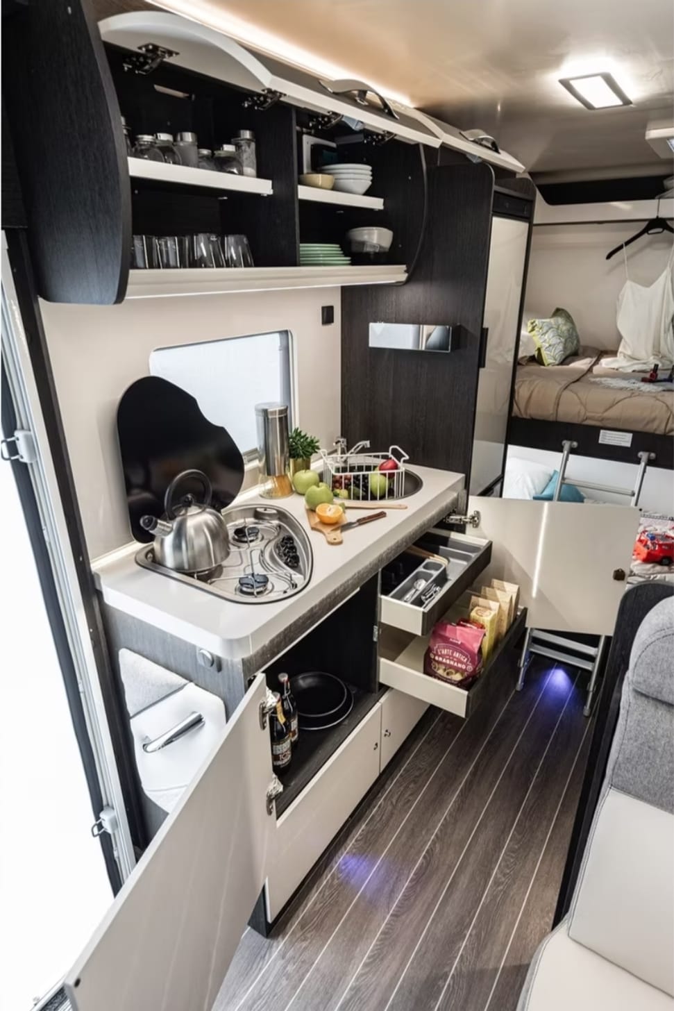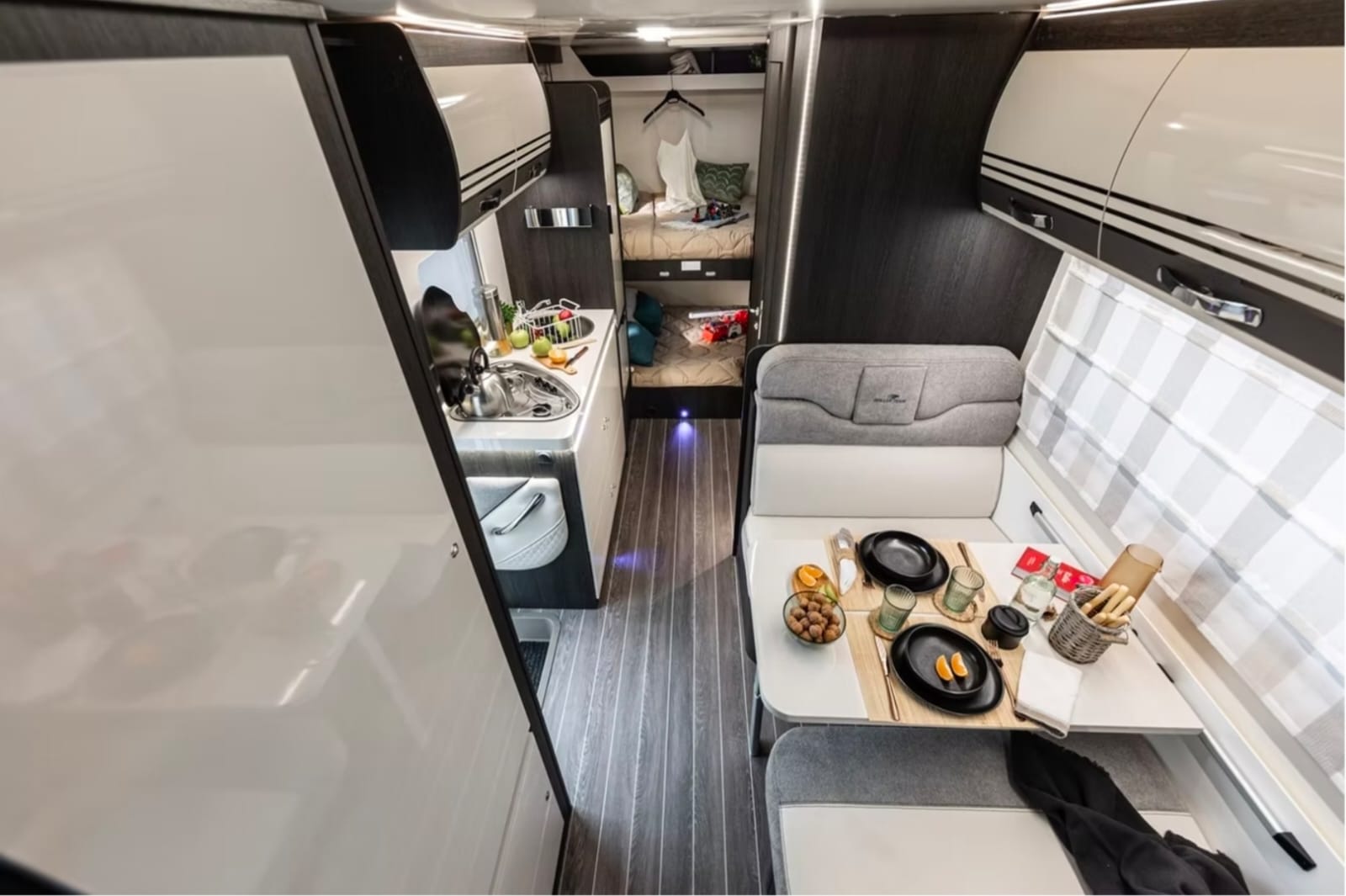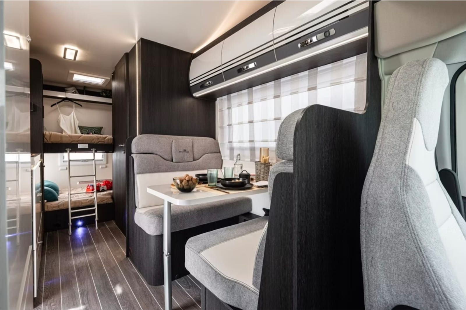 ogrzewanie Truma Gas Combi , panel kontrolny CP-PLUS, termiczne zaciemnienia kabiny, pojedynczych, pokrowce foteli w kabinie kierowcy, okna dachowe Mini Heky 40 x 40 cm, okno w łazience,