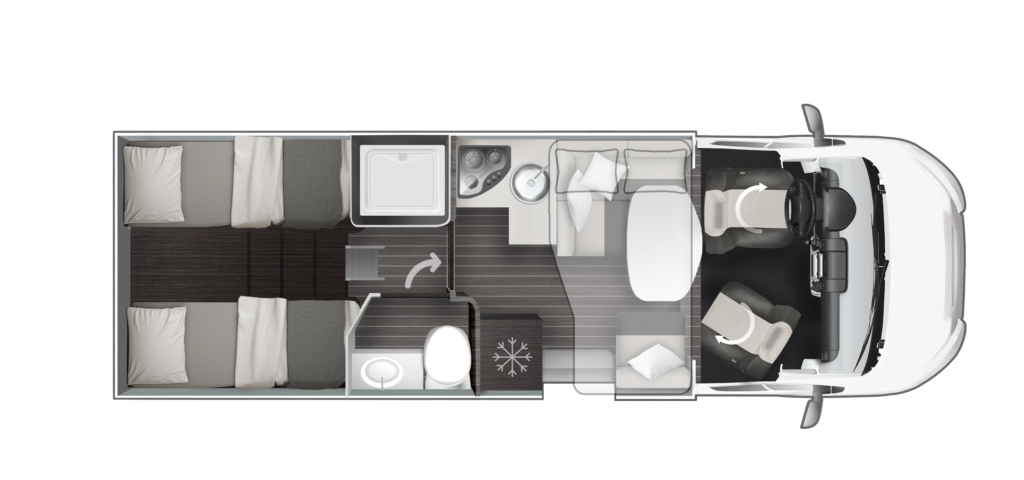 -Camper wykonany w technologii EXTREME PROTECTION SYSTEM EXPS (lżejsza waga, lepsze wyciszenie, odporny na grad, lepsza izolacja termiczna DO -35 STOPNI)