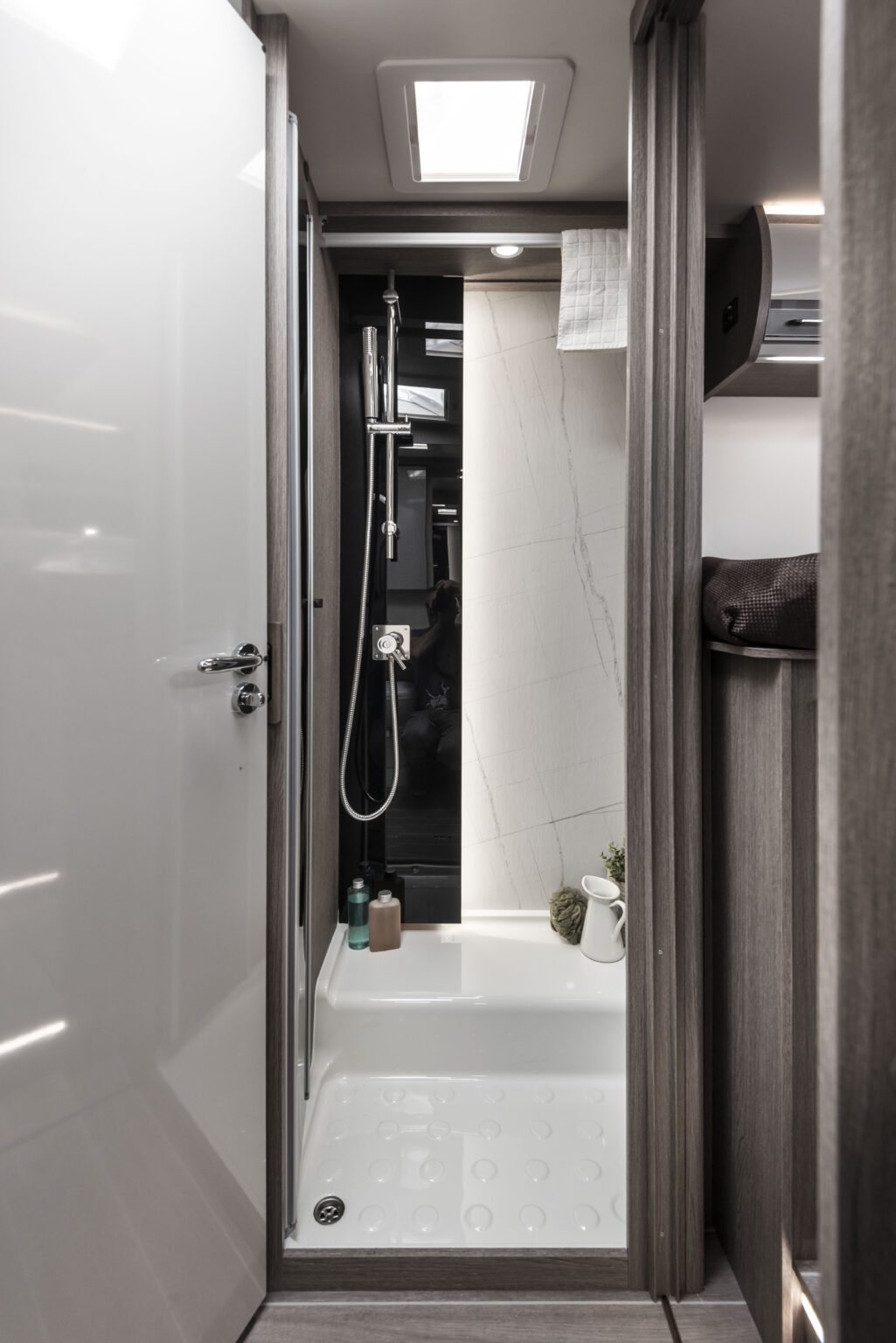 Prysznic z wyciąganą słuchawką w garażu